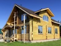 Коттедж может быть выполнен из оцилиндрованного бревна, обычного бруса, клеёного профилированного бруса.